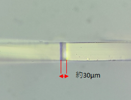 そこで軽い超薄板(0.2㎜以下)を用いて高信頼デバイスのための光学部材を提供するのですが、ガラスのもう一つの欠点である割れの回避が必要不可欠です。これには割れの起点である分断面の管理がポイントになります。